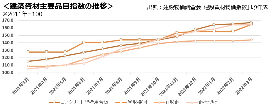 木造以外の建築資材についても影響が広がっています。
