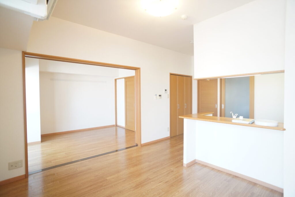 洋室へ繋がるドアがスライドドアになっており、写真のように開けておくことによって開放感を感じられると思います!