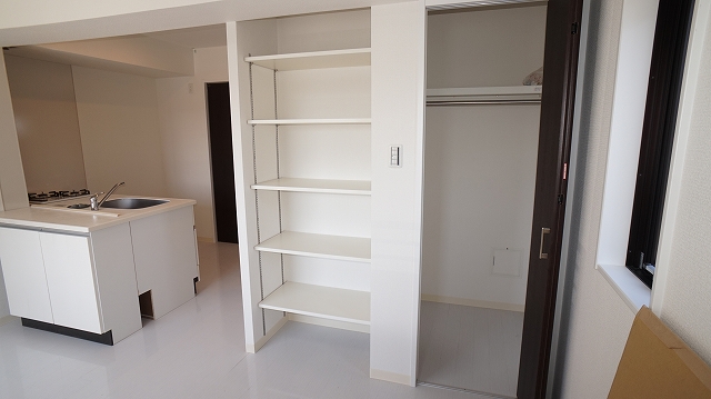 2階以上の1LDKタイプ(写真は206号室)の様子です。2階以上からはバルコニー付き!さらにベッドルームを引き戸で分けられますので、来客の際にも寝室を隠すことができます!