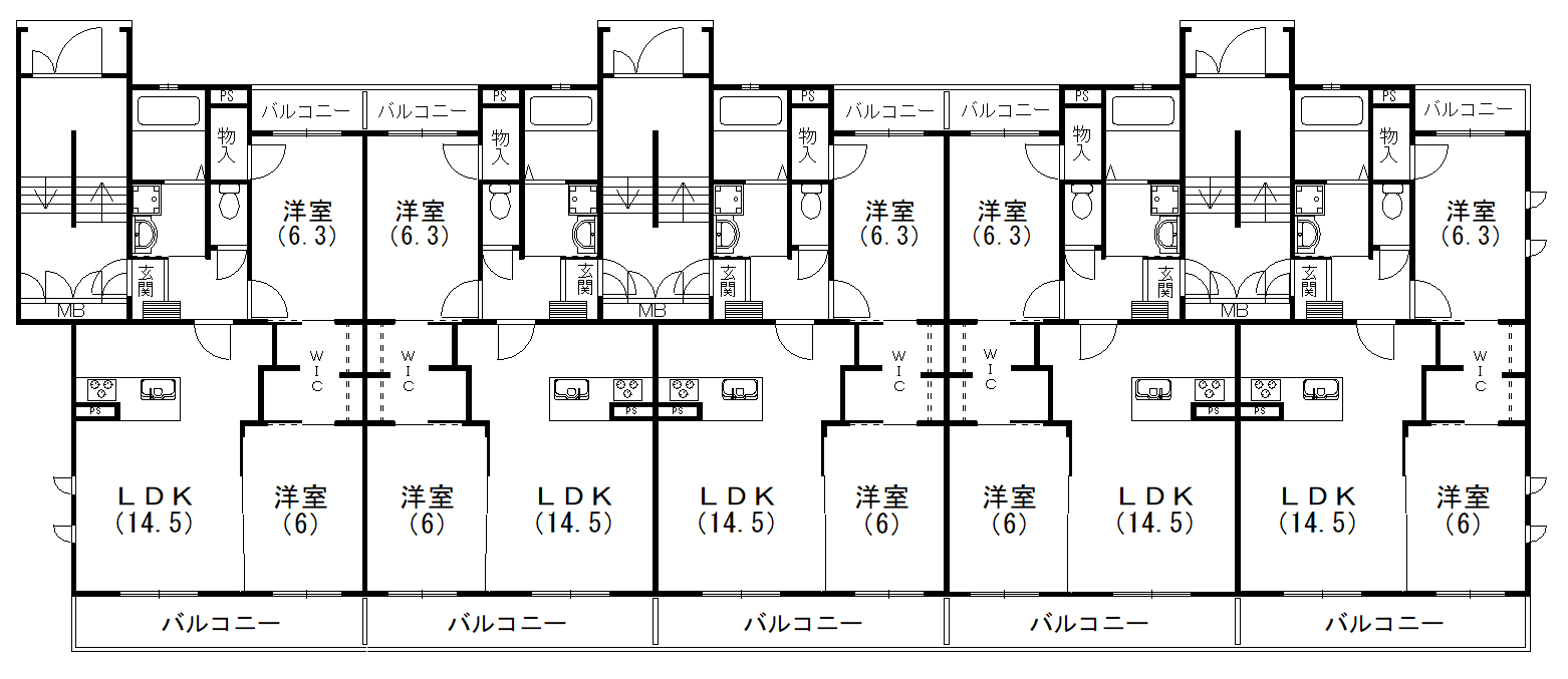 広々バルコニーの2LDK 15戸のタイプ