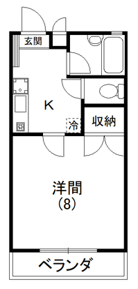 東向きの1Kタイプ