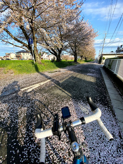 サクラ並木を通ったら散った花びらでピンクの絨毯