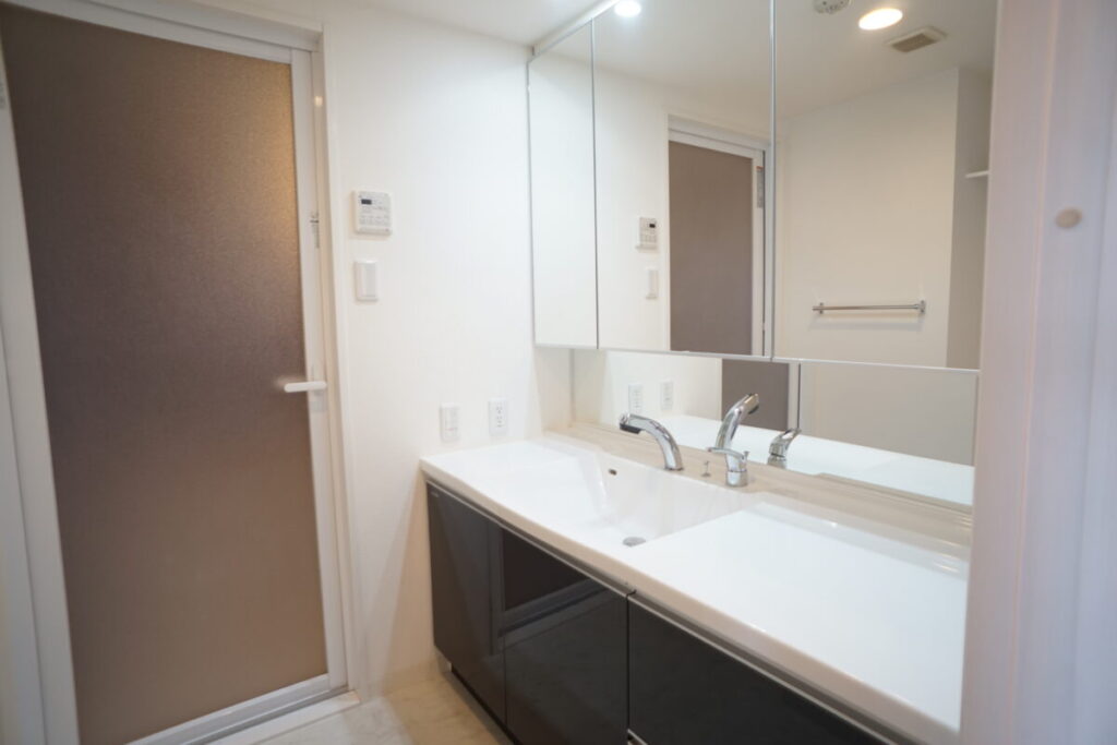 鏡面がかなり広いタイプの3面鏡洗面化粧台