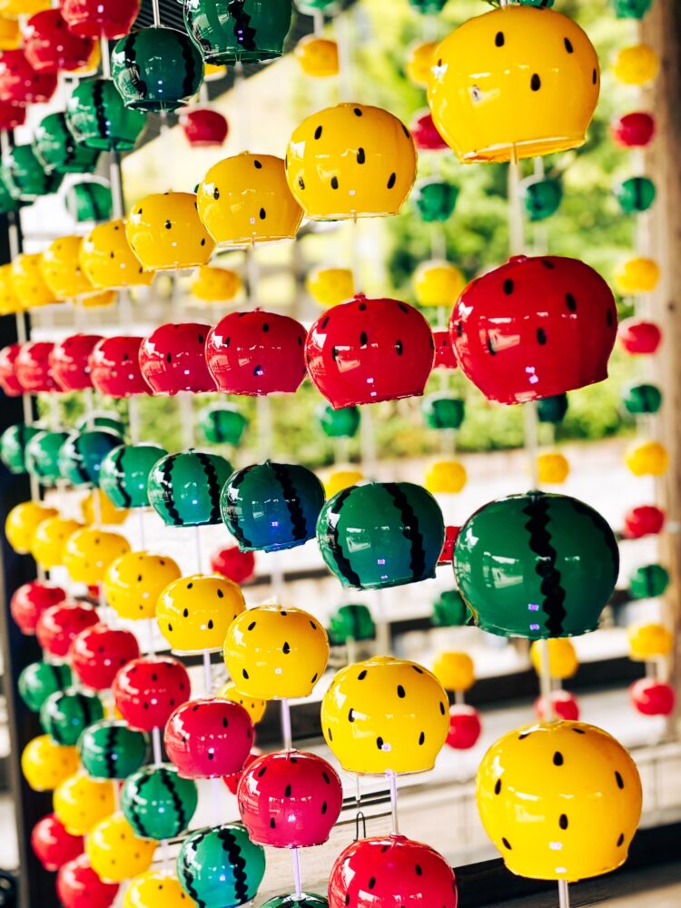 五月下旬~八月末にたくさんの風鈴が飾られてとても清涼感漂う