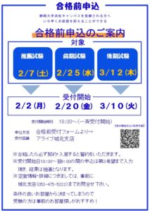 合格前受付もありますので、
