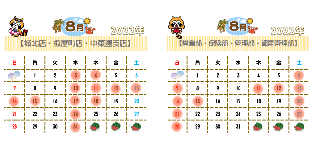 【アライブ営業日カレンダー】2022年8月