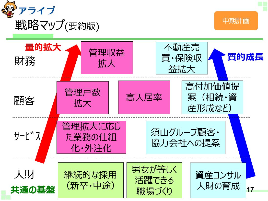 アライブは、この3か年で「量的拡大」と「質的成長」を追求します。